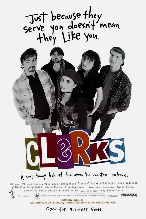 This is an image of a poster for the 1994 film Clerks. Copyright Miramax Films.